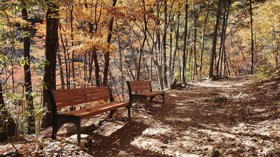 가평의 명지산은 해발 1,267미터로 경기 5대 명산 중 하나입니다. 높고 깊은 산세 덕분에 사계절 내내 아름답지만, 단풍이 절정을 이루는 10월 중순부터 11월 초 사이에는 전국에서 가장 많은 등산객들이 찾는 명소로 변합니다. 이 시기에는 산자락부터 정상까지 붉은 단풍과 노란 은행잎이 어우러져 황홀한 색의 향연을 펼칩니다. 산 아래에서 올려다보면 마치 산 전체가 불타오르는 듯 붉게 물들어, 자연의 생생한 에너지를 느낄 수 있습니다. 명지산의 단풍길은 남이섬과 아침고요수목원에서 이어지는 가평 여행 코스와도 잘 어울립니다. 가을 주말이면 가족 단위 방문객과 연인, 사진가들이 찾아와 단풍이 만든 황금빛 숲길을 배경으로 사진을 남기곤 합니다. 특히 맑은 날이면 산 아래로 흐르는 명지계곡의 물빛과 붉은 단풍이 함께 어우러져 자연 그대로의 아름다움을 보여줍니다. 명지산의 단풍은 다른 산보다 색감이 짙고 은은하게 번지는 것이 특징입니다. 붉은 단풍나무와 노란 신갈나무, 그리고 갈색의 참나무잎이 어우러져 눈앞에 펼쳐지는 풍경은 마치 수채화 한 장을 보는 듯합니다. 산을 오르다 보면 계곡 옆으로 작은 폭포와 돌담길이 이어지고, 가끔씩 흩날리는 낙엽들이 산책길을 따뜻하게 물들입니다. 명지산은 단풍뿐만 아니라 공기도 맑고 청량해서 걷는 내내 마음이 편안해집니다. 도시의 소음과 스트레스에서 벗어나 자연 속에서 힐링하기 좋은 산책코스로, 하루쯤은 휴식을 찾는 사람들에게 추천할 만한 곳입니다. 입장료는 없으며, 명지산 입구에는 무료 주차장이 마련되어 있습니다. 주말에는 조금 붐비지만, 아침 일찍 가면 여유로운 분위기 속에서 산책을 즐길 수 있습니다. 명지산은 코스가 다양해 초보자도 쉽게 오를 수 있는 탐방로가 있고, 등산을 좋아하는 사람이라면 정상까지 도전할 수도 있습니다. 길이 잘 정비되어 있어 아이들과 함께 걷기에도 무리가 없습니다. 무엇보다 단풍이 절정에 이를 때는 굳이 정상까지 가지 않아도 산자락만 걸어도 충분히 가을의 정취를 느낄 수 있습니다.